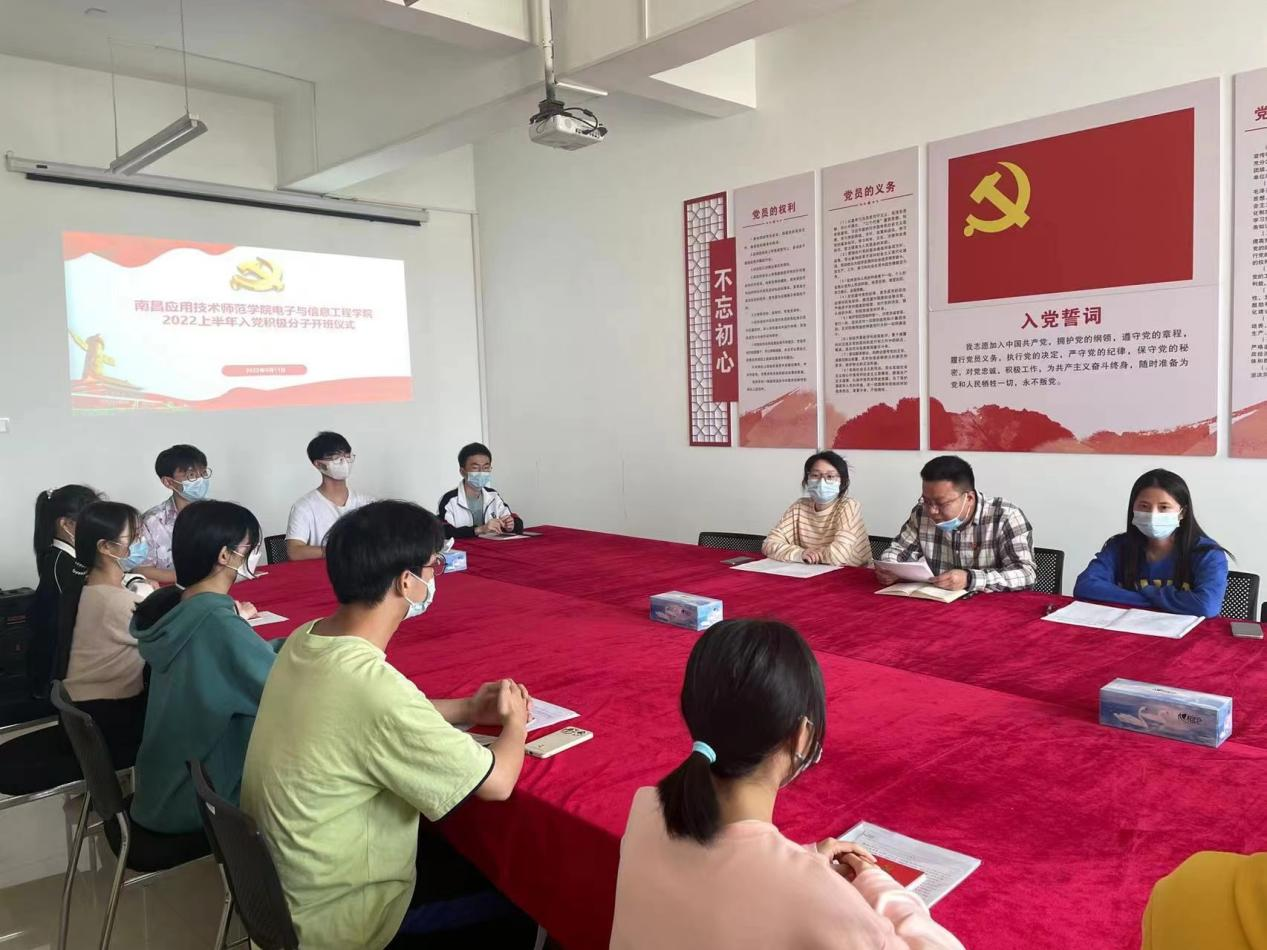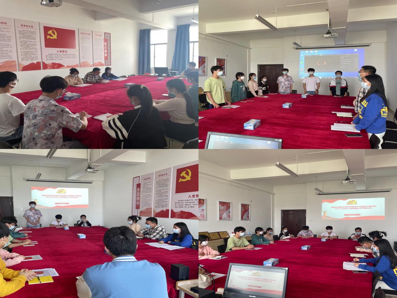 为切实加强入党积极分子队伍建设,提高入党积极分子政治素质,教育引导大员工入党积极分子端正入党动机,坚定理想信念,电子与信息工程永利集团3044noc登录入口于2022年5月11日下午15点在教学楼1407会议室举行永利集团3044noc登录入口2022上半年入党积极分子培训班开班仪式。电子与信息工程永利集团3044noc登录入口党总支书记龙犇同志、第二支部委员会委员肖诗婷同志和李倩文同志出席仪式,10名入党积极分子参加本次培训班开班仪式。
